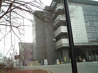 「雪の豊中キャンパス、図書館前」(分かりづらい)。