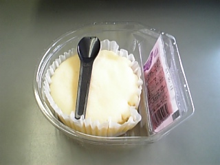 「スプーンで食べるチーズスフレ風スイーツ」とある(写真じゃ読めないけど)。