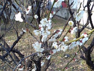近所の道路沿いに梅が咲いていました。